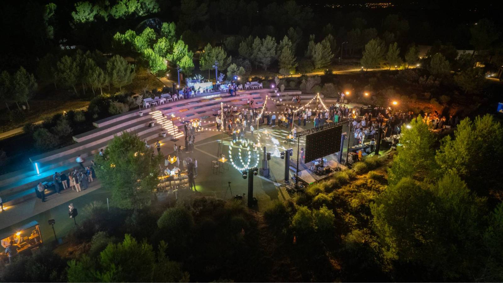 Les jeux de lumière sont indispensables pour créer l'atmosphère souhaitée lors d'une soirée de gala. Pour un événement intimiste, privilégiez des éclairages doux et chaleureux, comme des guirlandes lumineuses, des projecteurs à lumière tamisée, ou encore des bougies disposées sur les tables pour un effet cosy et élégant. Ces éclairages permettent de créer un environnement accueillant et intimiste.